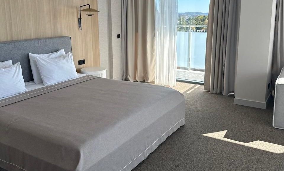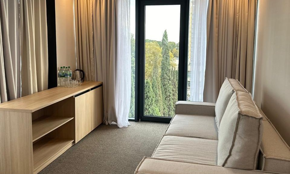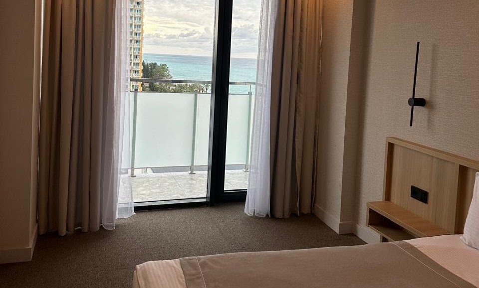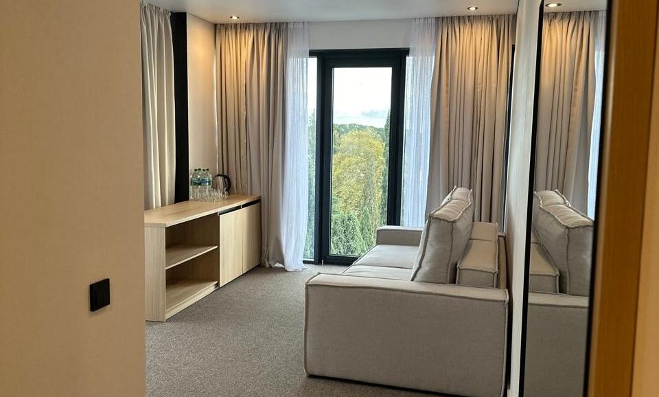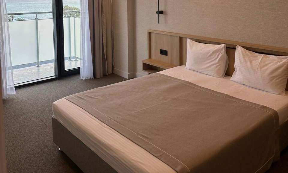 Количество комнат: 1 Вид из номера: на море или горы Кол-во доп. мест: 1, кресло-кровать Кол-во основных мест: 2 Площадь (кв. м): 26-35 Балкон с мебелью Мебель:вешалка, зеркало, кровать двуспальная, прикроватные тумбочки, пуфик, стол, шкаф Оборудование: кондиционер, телевизор, холодильник, чайная станция Санузел с душем: тапочки, туалетные принадлежности, фен халат Сервис: Wi-Fi бесплатно, смена полотенец, смена постельного белья, уборка номера.