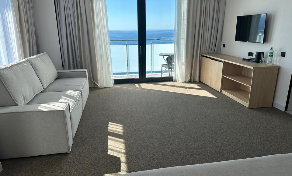 Количество комнат: 1 Вид из номера: на море или горы Кол-во основных мест: 2 Кол-во доп. мест: 2 (раскладной диван) Площадь (кв. м): 40-45 Балкон Мебель:вешалка, зеркало, кровать двуспальная, прикроватные тумбочки, пуфик, стол, шкаф Оборудование: кондиционер, телевизор, холодильник, чайная станция Санузел с душем: тапочки, туалетные принадлежности, фен халат Сервис: Wi-Fi бесплатно, смена полотенец, смена постельного белья, уборка номера.